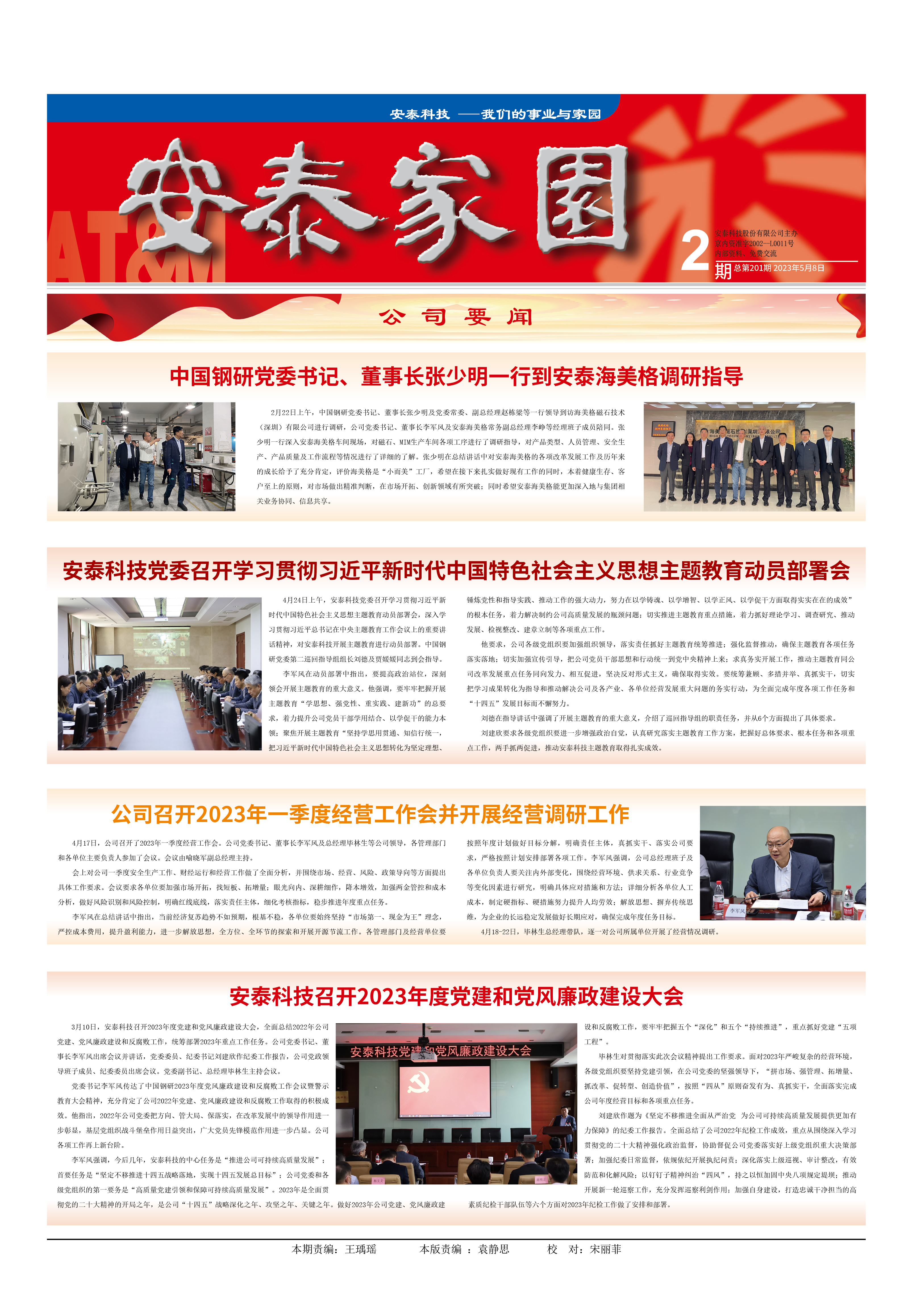 2月22日上午,中國鋼研黨委書記、董事長張少明及黨委常委、副總經(jīng)理趙棟梁等一行領(lǐng)導(dǎo)到訪海美格磁石技術(shù)(深圳)有限公司進(jìn)行調(diào)研,公司黨委書記、董事長李軍風(fēng)及安泰海美格常務(wù)副總經(jīng)理李崢等經(jīng)理班子成員陪同。張少明一行深入安泰海美格車間現(xiàn)場,對磁石、MIM生產(chǎn)車間各項工序進(jìn)行了調(diào)研指導(dǎo),對產(chǎn)品類型、人員管理、安全生產(chǎn)、產(chǎn)品質(zhì)量及工作流程等情況進(jìn)行了詳細(xì)的了解。張少明在總結(jié)講話中對安泰海美格的各項改革發(fā)展工作及歷年來的成長給予了充分肯定,評價海美格是“小而美”工廠,希望在接下來扎實做好現(xiàn)有工作的同時,本著健康生存、客戶至上的原則,對市場做出精準(zhǔn)判斷,在市場開拓、創(chuàng)新領(lǐng)域有所突破;同時希望安泰海美格能更加深入地與集團(tuán)相關(guān)業(yè)務(wù)協(xié)同、信息共享。