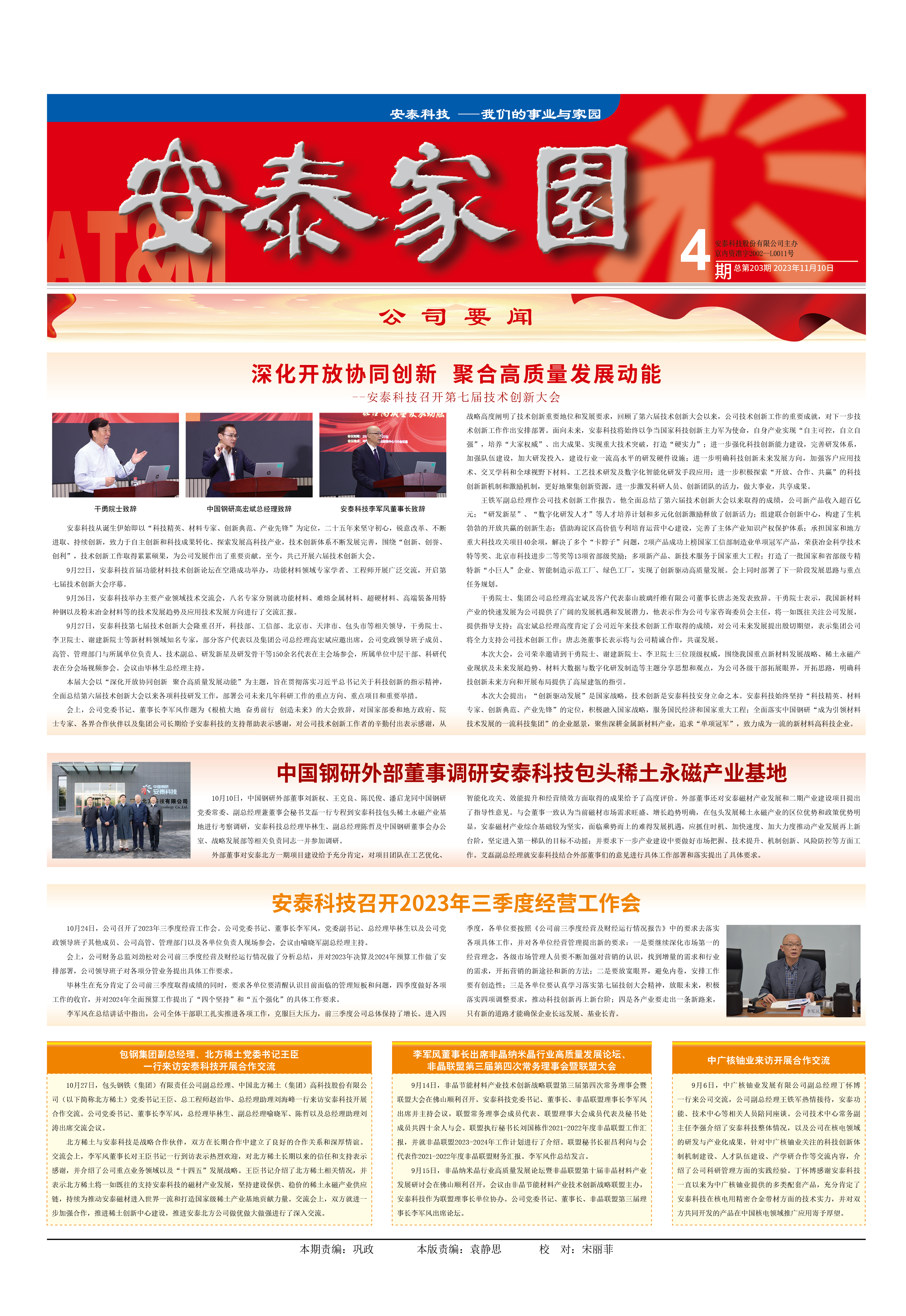 本次大會提出:“創(chuàng)新驅(qū)動發(fā)展”是國家戰(zhàn)略,技術(shù)創(chuàng)新是安泰科技安身立命之本。安泰科技始終堅持“科技精英、材料專家、創(chuàng)新典范、產(chǎn)業(yè)先鋒”的定位,積極融入國家戰(zhàn)略,服務(wù)國民經(jīng)濟和國家重大工程;全面落實中國鋼研“成為引領(lǐng)材料技術(shù)發(fā)展的一流科技集團”的企業(yè)愿景,聚焦深耕金屬新材料產(chǎn)業(yè),追求“單項冠軍”,致力成為一流的新材料高科技企業(yè)。