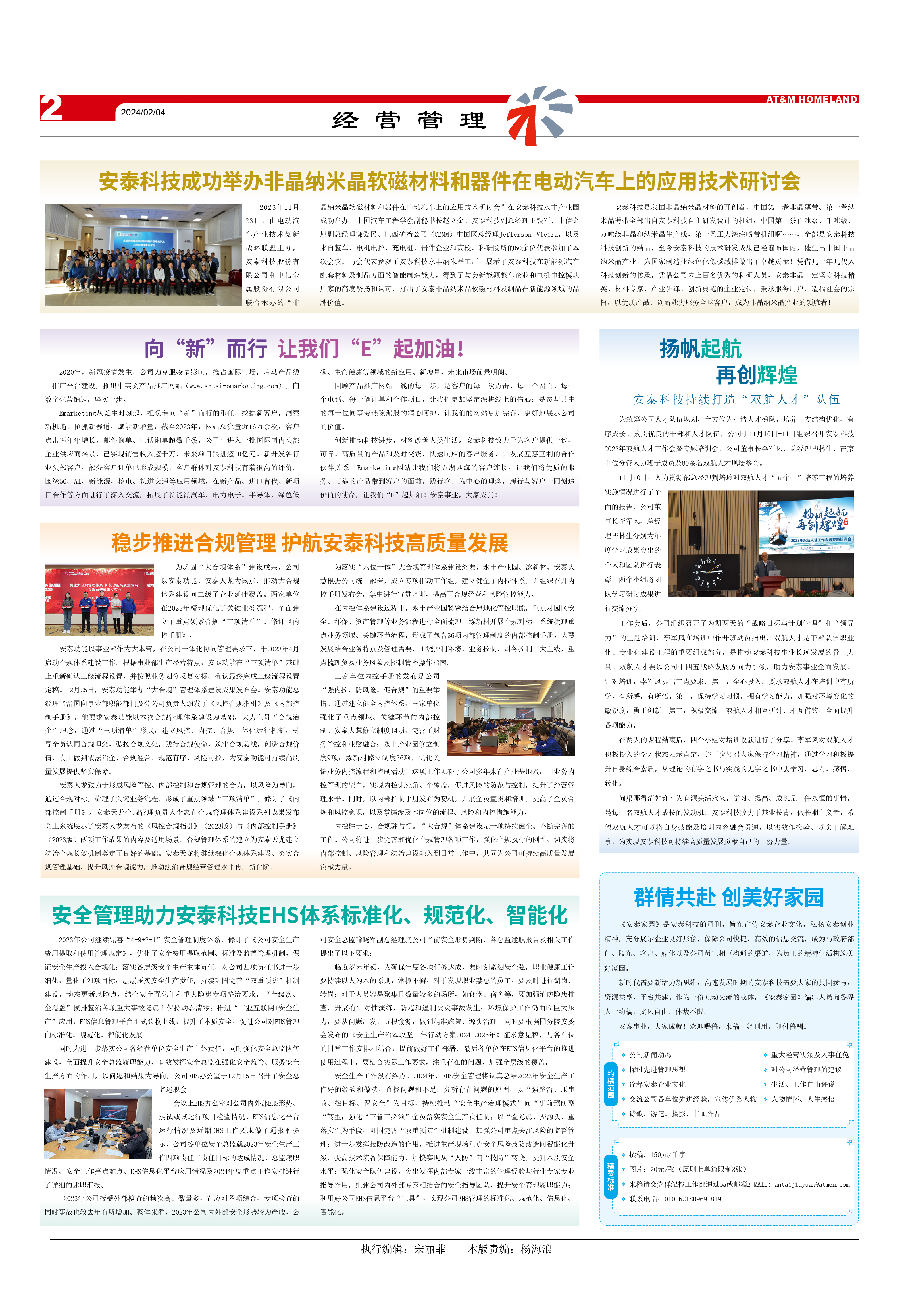 2023年11月23日,由電動(dòng)汽車產(chǎn)業(yè)技術(shù)創(chuàng)新戰(zhàn)略聯(lián)盟主辦,安泰科技股份有限公司和中信金屬股份有限公司聯(lián)合承辦的“非晶納米晶軟磁材料和器件在電動(dòng)汽車上的應(yīng)用技術(shù)研討會(huì)”在安泰科技永豐產(chǎn)業(yè)園成功舉辦。中國汽車工程學(xué)會(huì)副秘書長趙立金、安泰科技副總經(jīng)理王鐵軍、中信金屬副總經(jīng)理郭愛民、巴西礦冶公司(CBMM)中國區(qū)總經(jīng)理Jefferson Vieira,以及來自整車、電機(jī)電控、充電樁、器件企業(yè)和高校、科研院所的60余位代表參加了本次會(huì)議。與會(huì)代表參觀了安泰科技永豐納米晶工廠,展示了安泰科技在新能源汽車配套材料及制品方面的智能制造能力,得到了與會(huì)新能源整車企業(yè)和電機(jī)電控模塊廠家的高度贊揚(yáng)和認(rèn)可,打出了安泰非晶納米晶軟磁材料及制品在新能源領(lǐng)域的品牌價(jià)值。