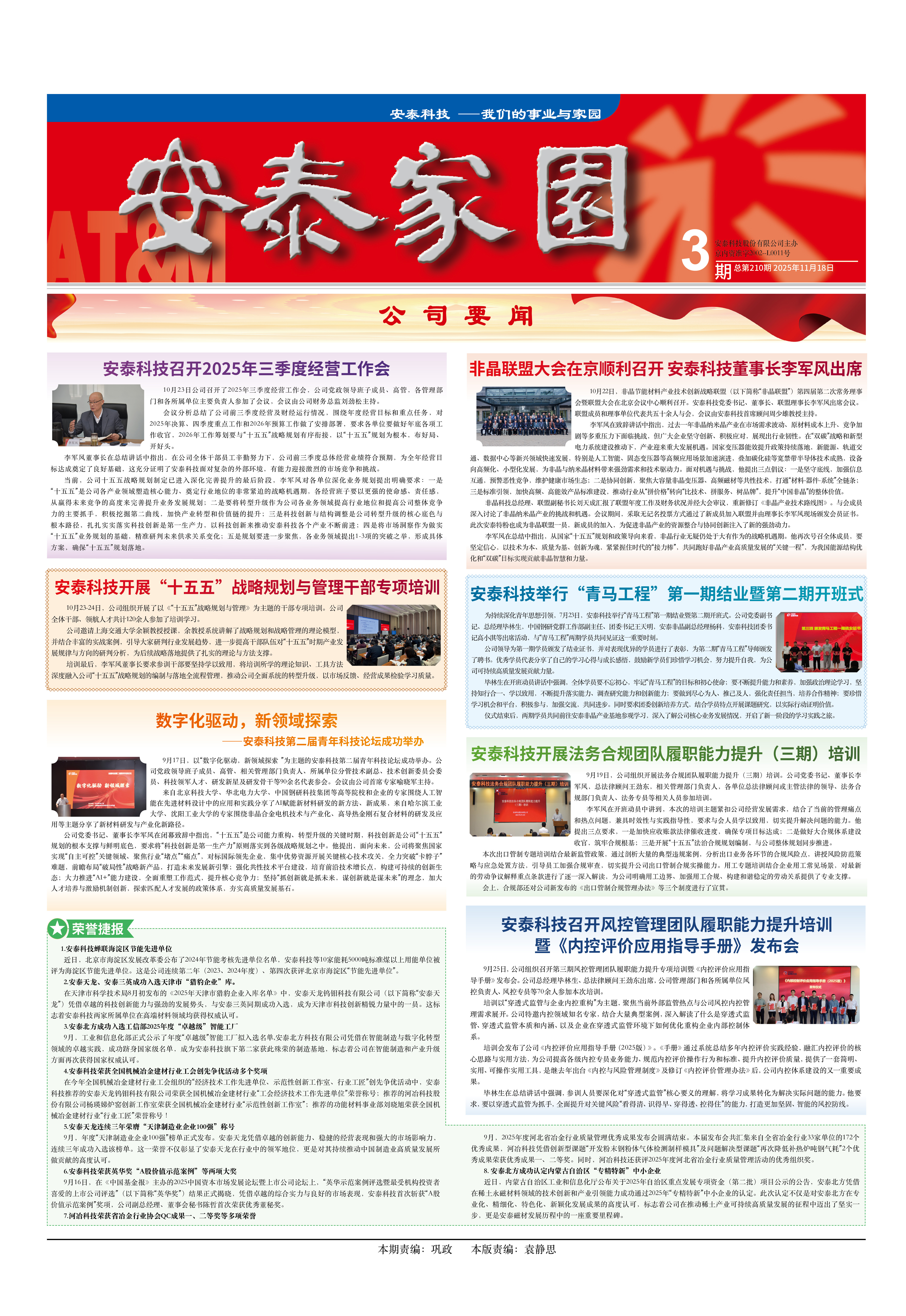 會議分析總結(jié)了公司前三季度經(jīng)營及財(cái)經(jīng)運(yùn)行情況,圍繞年度經(jīng)營目標(biāo)和重點(diǎn)任務(wù),對2025年決算、四季度重點(diǎn)工作和2026年預(yù)算工作做了安排部署,要求各單位要做好年底各項(xiàng)工作收官,2026年工作籌劃要與“十五五”戰(zhàn)略規(guī)劃有序銜接,以“十五五”規(guī)劃為根本,布好局、開好頭。